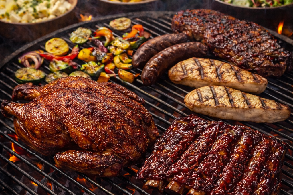 Genießen Sie knusprige Grillente, zarte Spare Ribs, feines Grillfleisch und würzige Würste mit ausgewählten Beilagen und echtem Grillgenuss.